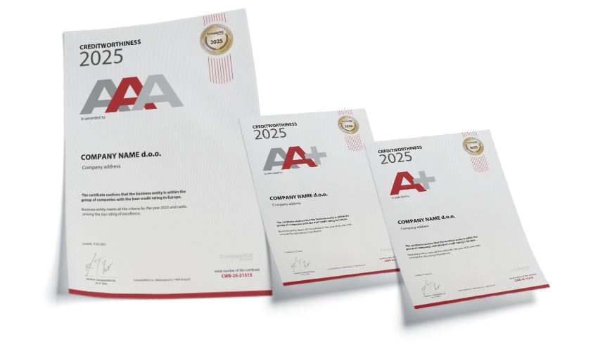 Potvrda bonitetne kuće CompanyWall o uspešnosti kompanije i njegovom sigurnom poslovanju